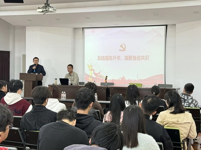 10月23日下午,江汉大学人工智能学院研究生第一、二党支部在J04五楼会议室联合举办“读·学·悟”师生联学交流会。活动以习近平新时代中国特色社会主义思想为指导,通过“理论共学+科研解惑”的创新形式,搭建起师生互动新平台。学院副院长胡晓莉出席指导,研究生党支部书记张万宝、陈郑,党员导师代表陈子琪、魏祖帅、赵体伟及30余名研究生党员、入党积极分子代表参加活动。