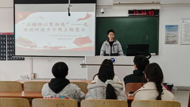 为深入学习贯彻习近平总书记关于加强和改进民族工作的重要思想,铸牢中华民族共同体意识,2025年11月11日,人工智能学院本科生党支部举办了“石榴籽心紧相连”主题党日活动。本次活动通过专题学习、交流研讨等形式,引导学生党员深刻理解民族团结的重要意义,争做维护民族团结的践行者。