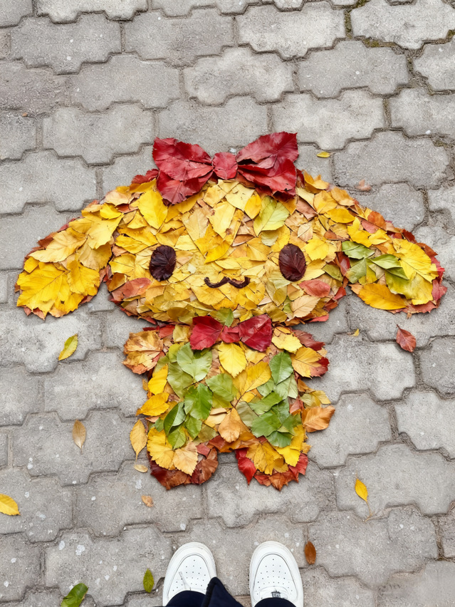 秋日午后的阳光洒满中庭,同学们散布在步道与草坪间,以落叶为材,巧手创作。有人用梧桐叶拼出圆弧笑脸,以石子点缀五官;有人以层层银杏叶叠出圆润的小狗造型,配上彩纸眼睛更显灵动;还有小组合作,选用黄、绿、紫等多色叶片,拼出蓬松玩偶,并以红枫作蝴蝶结,细节精致,创意纷呈。活动现场,大家细心调整叶片位置,分享捡到完美叶片的趣事,讨论声、笑声与快门声交织成一片暖意。提交作品时,同学们围拢欣赏彼此的作品,眼中含笑,赞不绝口,现场洋溢着轻松愉快的氛围。