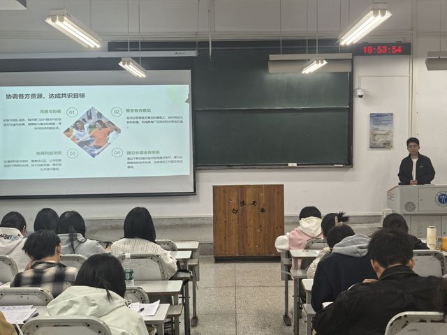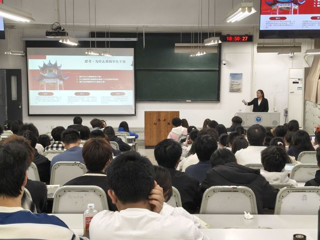 培训围绕团干成长的核心需求,以“循序渐进、学用结合”为主线展开。11月5日晚,首场培训在J06A108教室举行。24级辅导员饶老师以“团干个人成长与班级管理”为题,从学业规划、科研竞赛、升学就业等方面,分享了“目标分层法”等实用策略,并系统讲解了班级管理的重点与方法,引导学员在服务集体中实现自我提升。