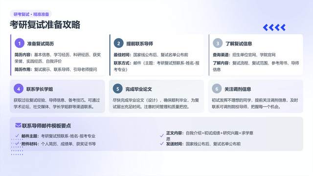 对于备战复试与公考的同学,会议提供了详尽的寒假备考策略。内容涉及复试简历准备、导师联系技巧、调剂信息关注以及公务员考试的时间规划和备考要点。清晰的路线图为同学们高效利用寒假、实现突破增添了信心。